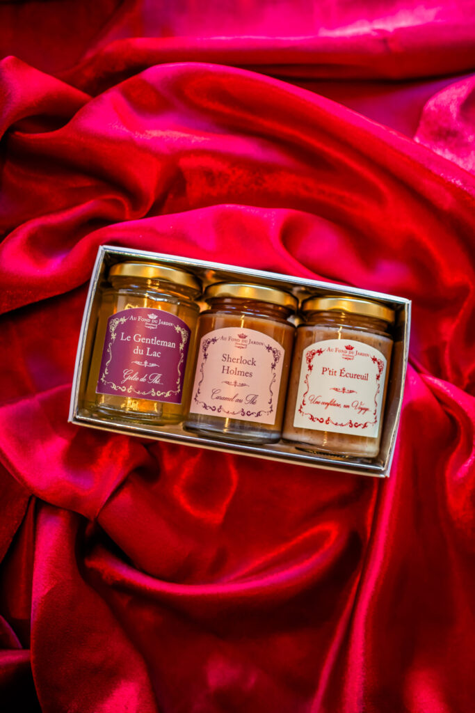 En édition très limitée, découvrez ce coffret découverte de nos douceurs à tartiner maison (confitures extra maison, gelées de thés, caramels au thé)