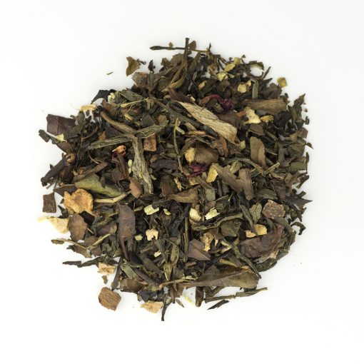 Thé blanc parfumé aux épices, aux agrumes et au biscuit.